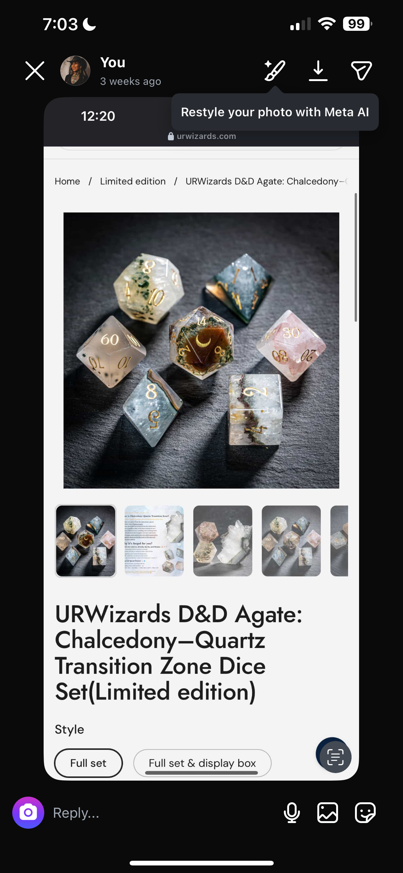 A few weeks later I had the most beautiful dice I have ever seen in my life! UR Wizards was kind enough to let me select the first set I wanted to shoot and immediately I picked the Agate-Chalcedony-Quartz transition set! These babies are so beautiful and made with such care!! No way could I just do simple images with them!! No words, honestly. So, now I’ve started the process of concept creation and I know it’s going to be so good! So stay tuned and check it out because I’m really excited to make these!!!